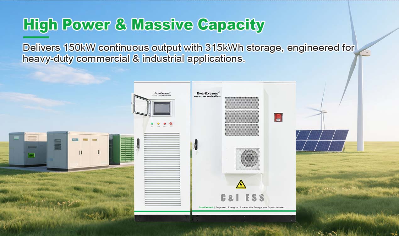 O sistema de armazenamento de energia EverExceed All-in-one EverPower Industrial & Commercial integra de forma eficiente componentes como PCS (Controlador de Potência), baterias LiFePO4, BMS (Sistema de Gerenciamento de Bateria), EMS (Sistema de Gerenciamento de Energia), sistema de combate a incêndio e sistema de dissipação de calor em um único gabinete. Trata-se de uma solução de energia de reserva de alta potência para clientes comerciais/industriais e de nível de rede. Este sistema de armazenamento de energia de alta tensão oferece a máxima flexibilidade tanto para instalações em rack quanto em gabinetes. Mais seguro, inteligente e simples, este sistema é ideal para solucionar problemas de energia em subestações, áreas externas, microrredes com armazenamento de energia, pequenas fábricas, shoppings, estações de carregamento solar, etc.