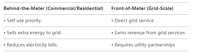 Entendendo as diferenças: armazenamento de baterias comerciais, armazenamento em escala de rede e armazenamento residencial.
