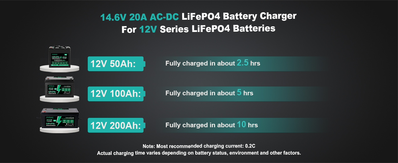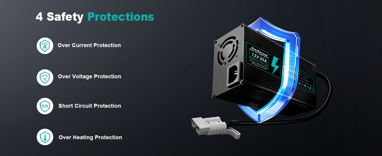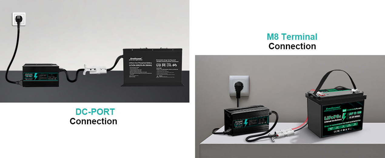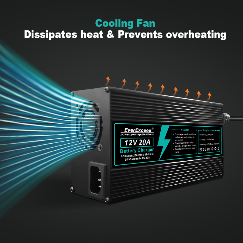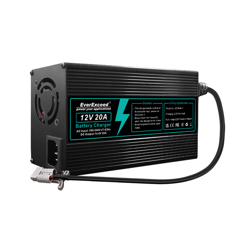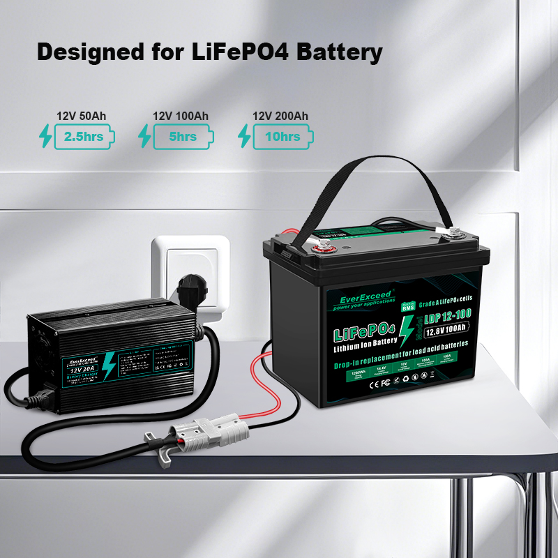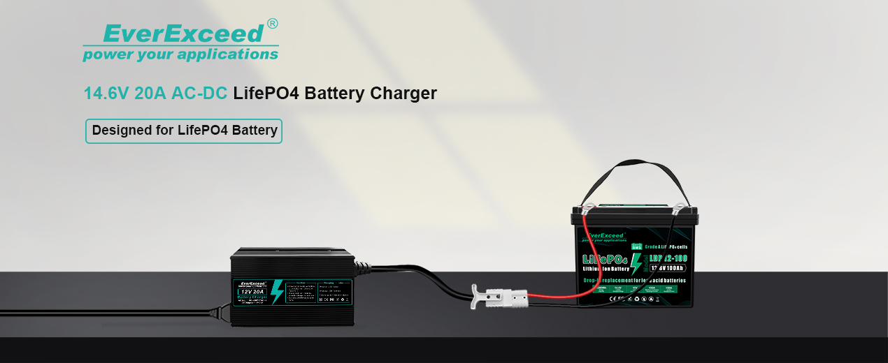 O carregador de bateria de lítio EverExceed foi projetado para carregamento rápido, eficiente e confiável de baterias de LiFePO₄ e outras baterias de lítio