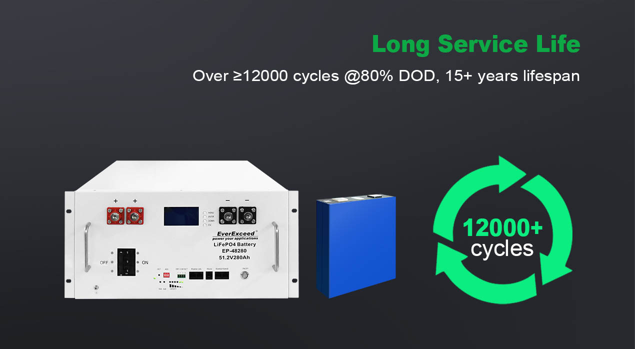 Células LiFePO4 de grau A com ≥12.000 ciclos e vida útil de 15 anos, extintor de incêndio integrado, certificadas e ecológicas.