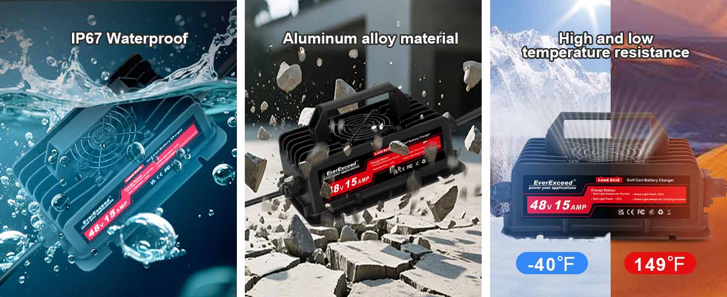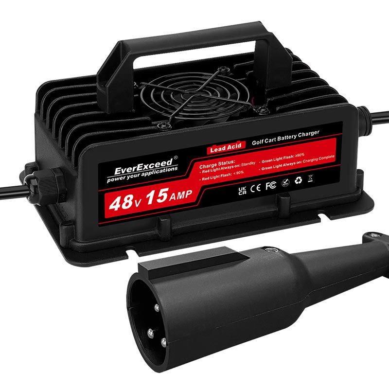 Este carregador foi projetado para baterias de chumbo-ácido de 48 V e é altamente adequado para carrinhos de golfe.