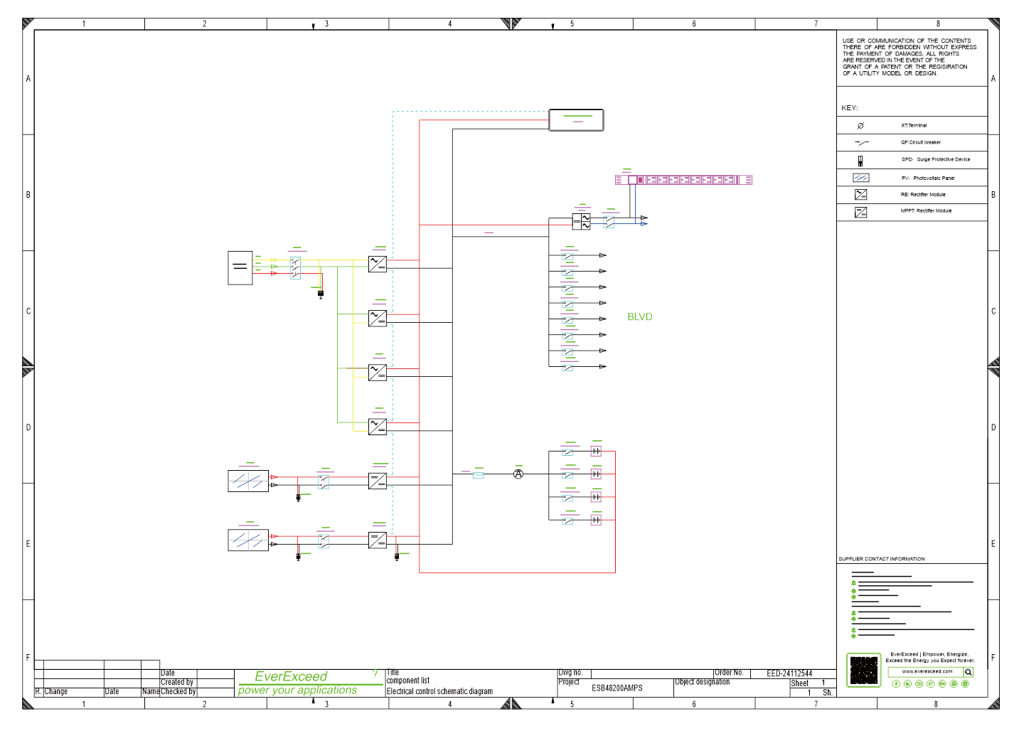 Projeto de Distribuição de Energia Múltipla: Combina energia CC, bateria bidirecional e distribuição fotovoltaica, tudo equipado com proteção contra surtos. A distribuição CC inclui BLVD para evitar a descarga excessiva da bateria, prolongando sua vida útil.