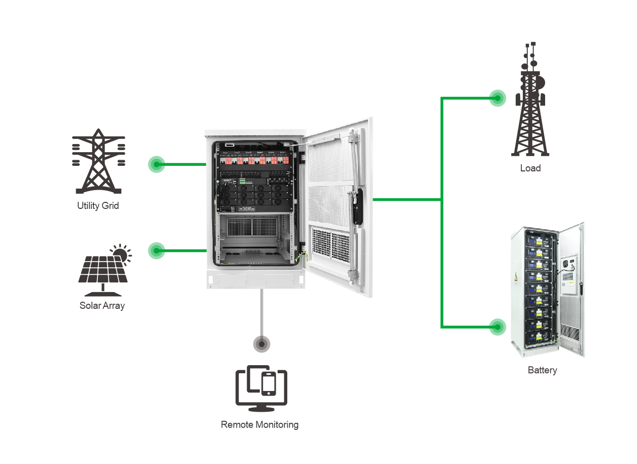 Gerenciamento de energia de alta eficiência: O módulo retificador atinge um fator de potência de entrada de 0,99 e uma eficiência superior a 96%, enquanto o módulo fotovoltaico também apresenta uma eficiência de 96%. Ambos possuem um design compacto de 1U com alta densidade de potência e desempenho de economia de energia.