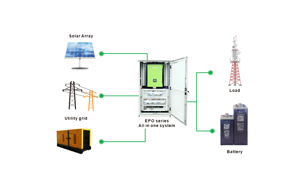 O sistema de energia solar EPO pode fornecer energia estável e confiável para praças de pedágio em rodovias. Ele prioriza o uso da energia solar, descarrega a bateria durante a noite e utiliza a rede elétrica ou um gerador a diesel como fonte de energia de reserva. Dessa forma, o sistema solar EPO garante fornecimento de energia ininterrupto 24 horas por dia, 7 dias por semana, solucionando completamente o problema de energia fraca e falta de energia!