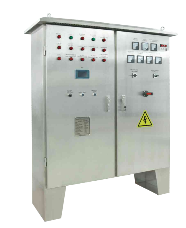 2. Seguro e confiável: Dois ventiladores de alta potência foram adicionados na parte superior do gabinete, resolvendo eficazmente o problema de resfriamento de grandes cargas, permitindo que o carregador de baterias opere normalmente sob cargas elevadas por longos períodos. O inversor foi personalizado para fornecer energia CA (230 VCA) com saída confiável; a fonte de alimentação CC também foi personalizada com um circuito redutor de tensão em cadeia de silício, que fornece energia CC confiável para cargas de precisão.